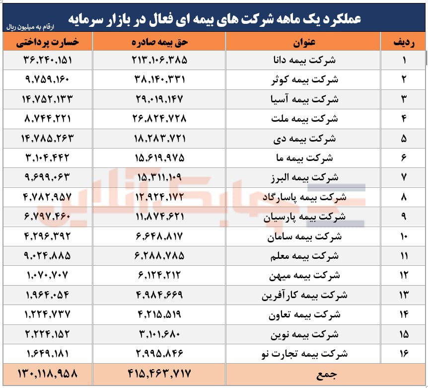 بیمه دانا صدر نشین و تجارت نو قعر نشین شد + جدول