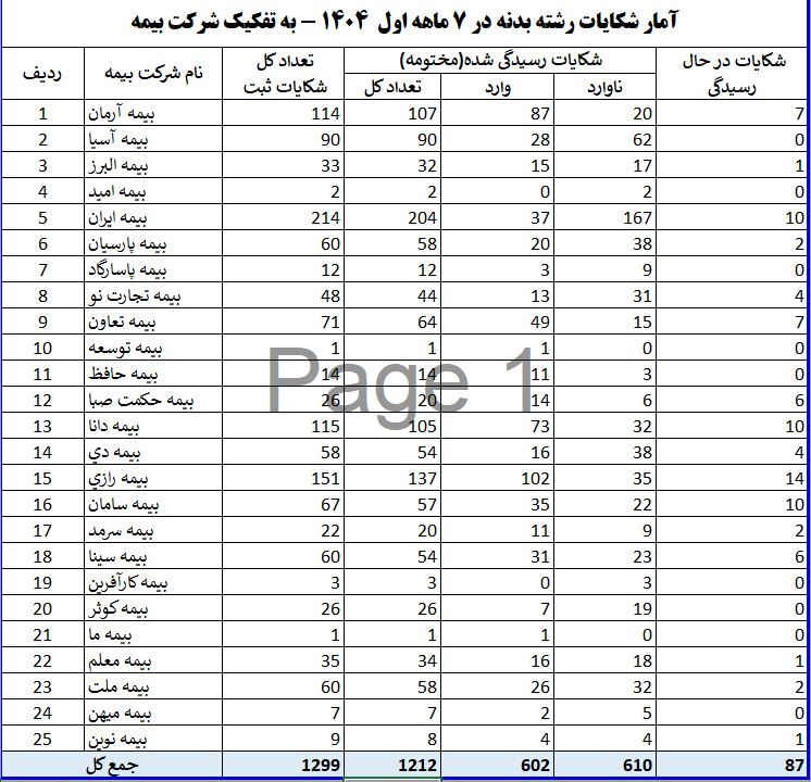 درنهایت،آنچه از دادههای رسمی برمیآیداین است که بین شرکتهای بیمه ای در نحوه مدیریت شکایات رشته بدنه، شکاف جدی وجود دارد.