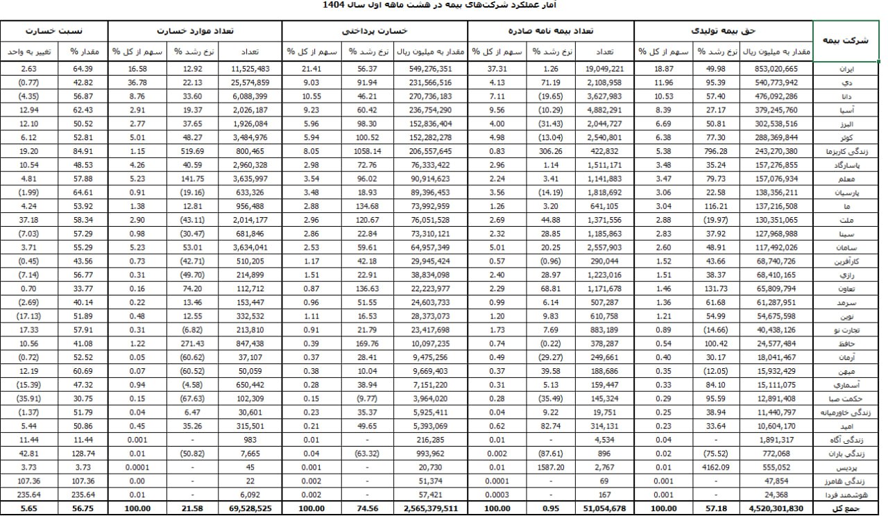 با این حال،نسبت خسارت ۶۴.۳۹ درصدی نشان میدهد که بخش مهمی از این رشد، با فشار فنی همراه بوده است.